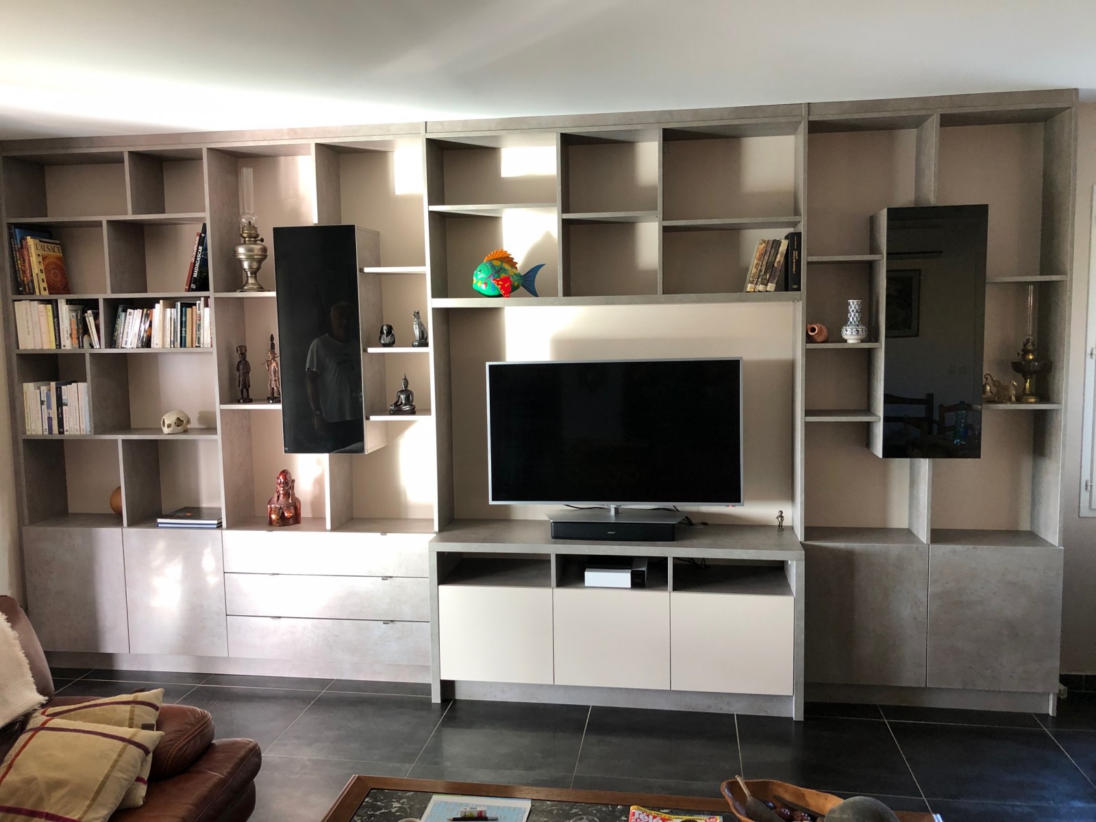 Provence placards, votre fabricant et installateur de tout rangement sur-mesure à Martigues, vous propose une large gamme de meubles s’intégrant parfaitement à votre intérieur. Sur cette photo nous avons créé un meuble design dans lequel la tv trouve toute sa place.Vous recherchez un meuble origin...